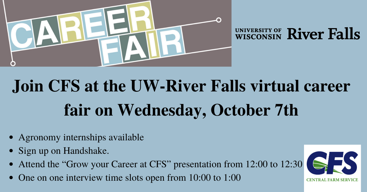 Join CFS at the University of Wisconsin River Falls virtual career fair on Wednesday, October 7th
